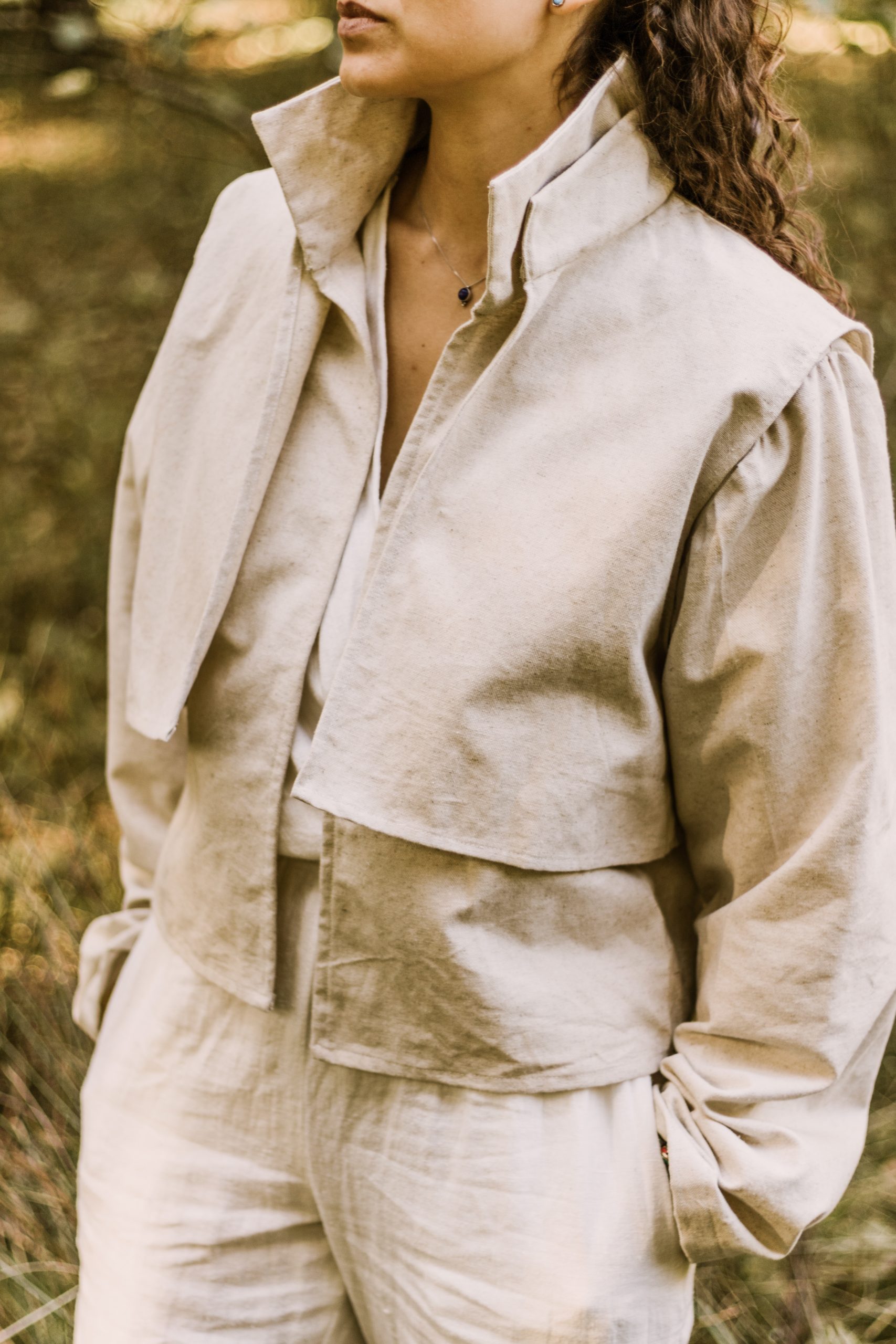 Pamut, illetve pamut kender anyagból készült dzseki mellénnyel. Elérhető hímzett, és hímzés